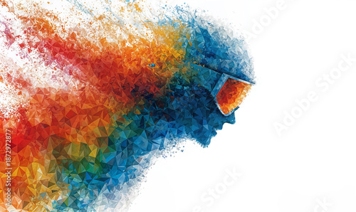 Abstract polygonal winter sports athlete head with colorful dynamic flame effect in vibrant red green blue colors on clean white background vector illustration for winter olympics concept