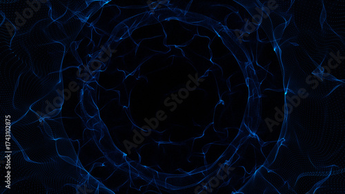 Abstract glowing particle tunnel with swirling bright particles, creating a futuristic energy flow.