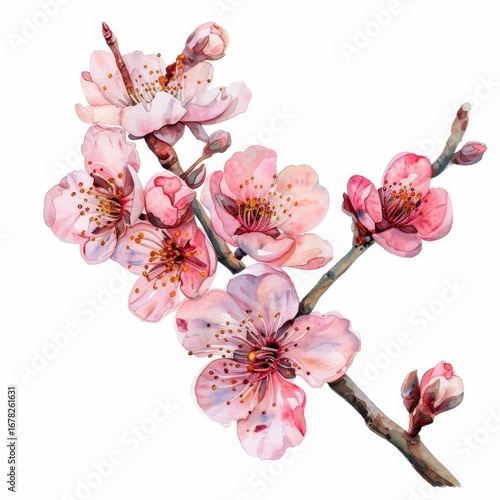 watercolor illustration of Blossom on white background Created with Generative AI technology