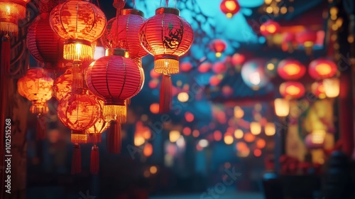 "A vibrant real-life image depicting traditional Chinese Lunar New Year celebrations, featuring colorful lanterns, festive decorations, and cultural activities, capturing the joy and spirit