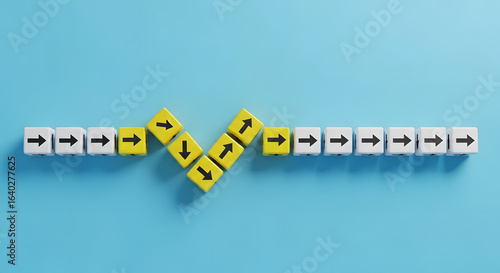 Flexibility and adaptation concept. Arrows on cubes following a flexible path.