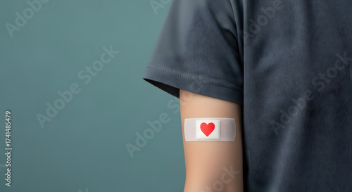 Arm with plaster and heart, blood cells, donate plasma, world blood donor day, health care, transfusion, Leukaemia disease