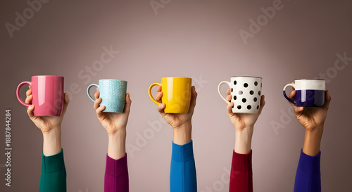 Diversity and Lifestyle Concept. People Raised Up Hand to show their own Cup and own Favorite Drinks