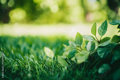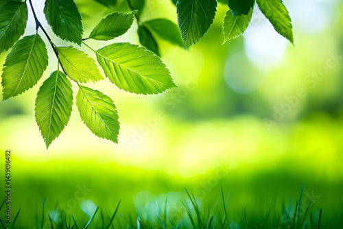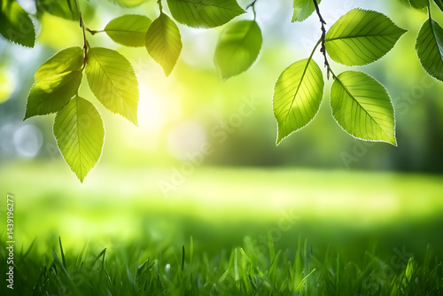 "Fresh Green Leaves with Sunlight in Spring Nature Background"