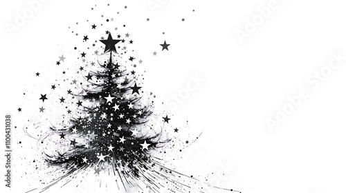 "A beautifully hand-drawn Christmas tree adorned with sparkling stars, elegantly illustrated on a clean white background, capturing the essence of the holiday season with artistic charm."