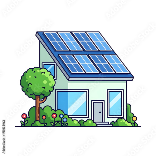 "Eco-Friendly House Scene — Solar-Paneled Home with Garden"